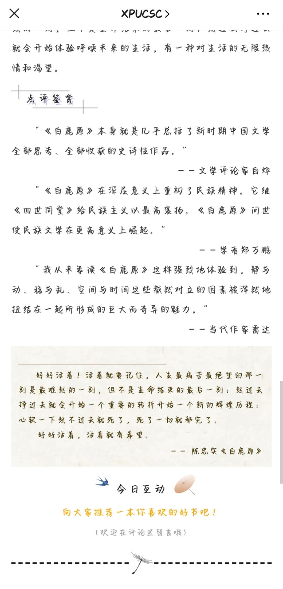 为迎接第25个世界读书日的到来,在学院范围内营造浓郁的读书氛围,丰富疫情期间同学们的精神文化生活,提高学生的人文素养,beat365在线唯一官网于4月23日起至本学期结束,面向学院师生持续开展了以“共读时光”为主题的线上图书推荐活动,在学院掀起了一股读书热潮。