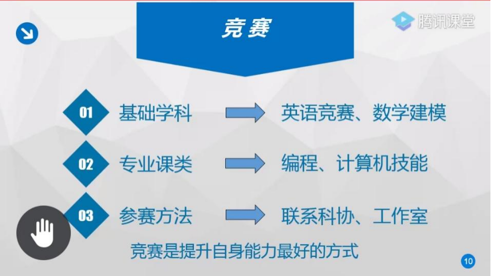 接着由优秀学长李昆洪对于大学生活的规划进行发言,大学无非以俩种目标规划考研或者工作。然后学长对于这两种目标进行规划,接着以在大学该如何学习为主题进行发言,要学会自律,学会时间管理,其实也是自律,要勇于参加竞赛,例如:数学建模,英语竞赛,编程比赛等等。除此之外要学会培养爱好,学习基本软件例如:office,wps,ps,pr,重装系统,系统排障等。