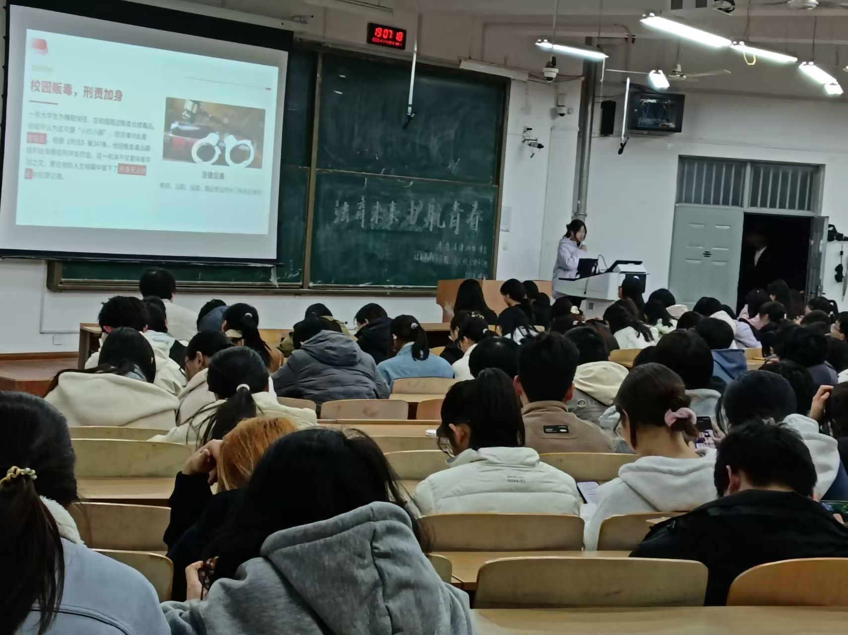 整场讲座以“精准普法、警示育人”为目标,既传递了禁毒法律知识,更强化了学生“珍爱生命、远离毒品”的思想自觉与行动自觉。此次活动是学院深化法治教育、构建平安校园的重要举措,通过将禁毒教育融入学生日常,帮助青年学子认清毒品危害、守住法律红线,为青春成长筑牢安全屏障。(撰稿:左温慧 审核:赵勇进)