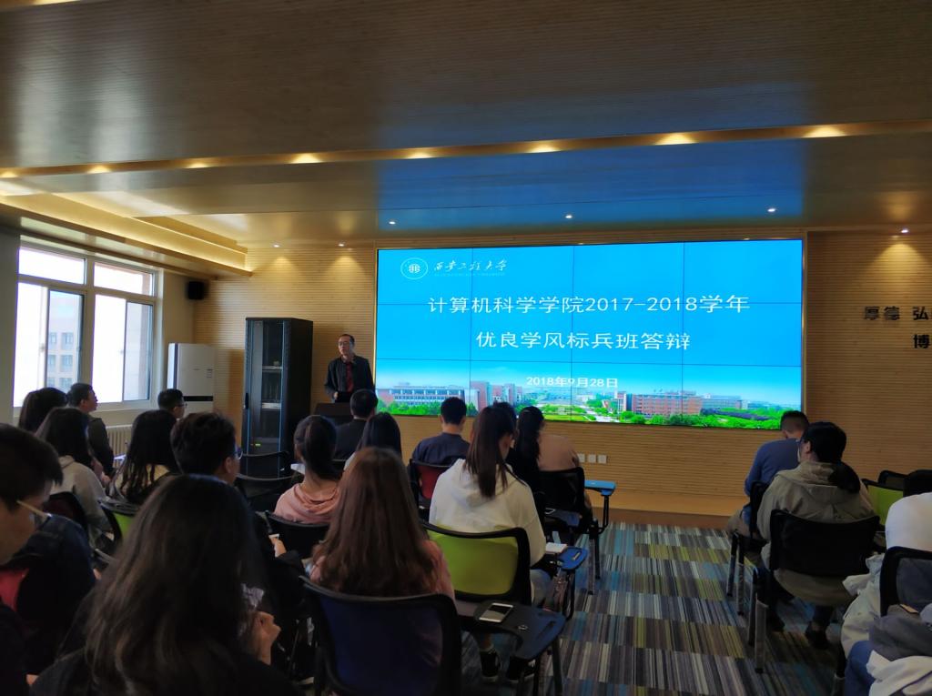 入围此次“优良学风标兵班”答辩的9个班级是从前期评定的“优良学风示范班”中产生,其中2015级有3个,2016级有2个,2017级有4个。答辩过程中,各候选班级通过PPT向大家展示了各自班级建设、学风状况、获奖情况、班级活动等。最终通过评委讨论打分,一致决定推荐2016级软件工程1班为我院2017-2018学年“优良学风标兵班”。
