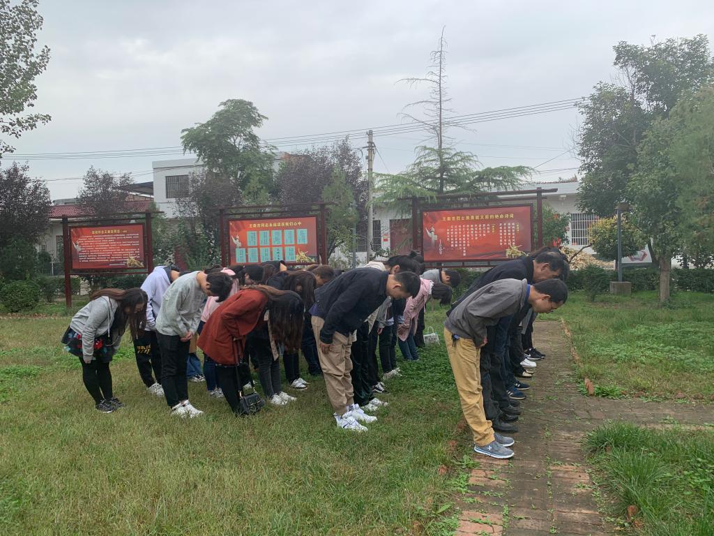 参观结束后全体党员在党性教育基地会议室进行了座谈和学习交流分享。学生党员积极踊跃发言,就参加本次活动畅谈自身感受和体会,分别表达了各自对革命烈士的缅怀之情,深感今天的幸福生活来之不易,并结合观看中华人民共和国成立70周年庆典的感想表达了对新中国成立70周年的激动和喜悦,大家都表示为能生活在这样的新中国而感到无比的骄傲与自豪。座谈结束后全体党员来到王泰吉烈士陵园墓碑前,怀着对烈士无比的崇敬之情,深深三鞠躬,共同向王泰吉同志致敬,缅怀先烈。