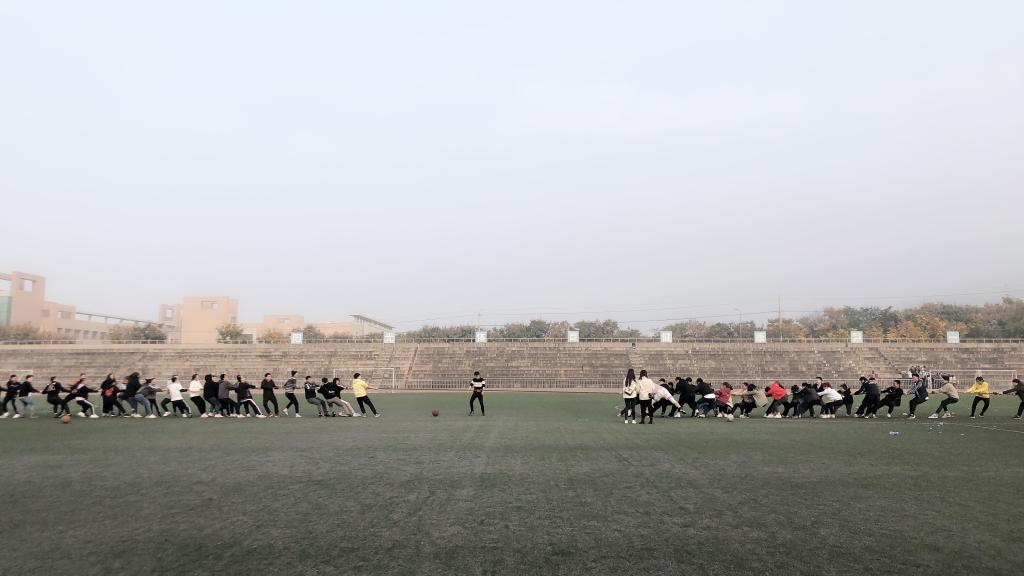 此次趣味运动会包括“结队同行”、“螃蟹背西瓜”、“拖球跑”、“双人踩气球”、“50米迎面障碍接力赛”、“拔河”等6个比赛项目,所有项目均以团体赛的形式进行,参加活动的老师与同学们都积极投身其中。“结队同行”采取八人一组的形式,极大地考验了团队协作能力,同学们经过认真的练习都取得不错的成绩。双人踩气球采取混战的形式,比赛过程也十分激烈有趣。最后的压轴项目是拔河比赛,2018和2019级的同学纷纷展开了对抗,最终2019级的同学以微弱的优势赢得比赛,也预示着本次运动会的圆满结束。
