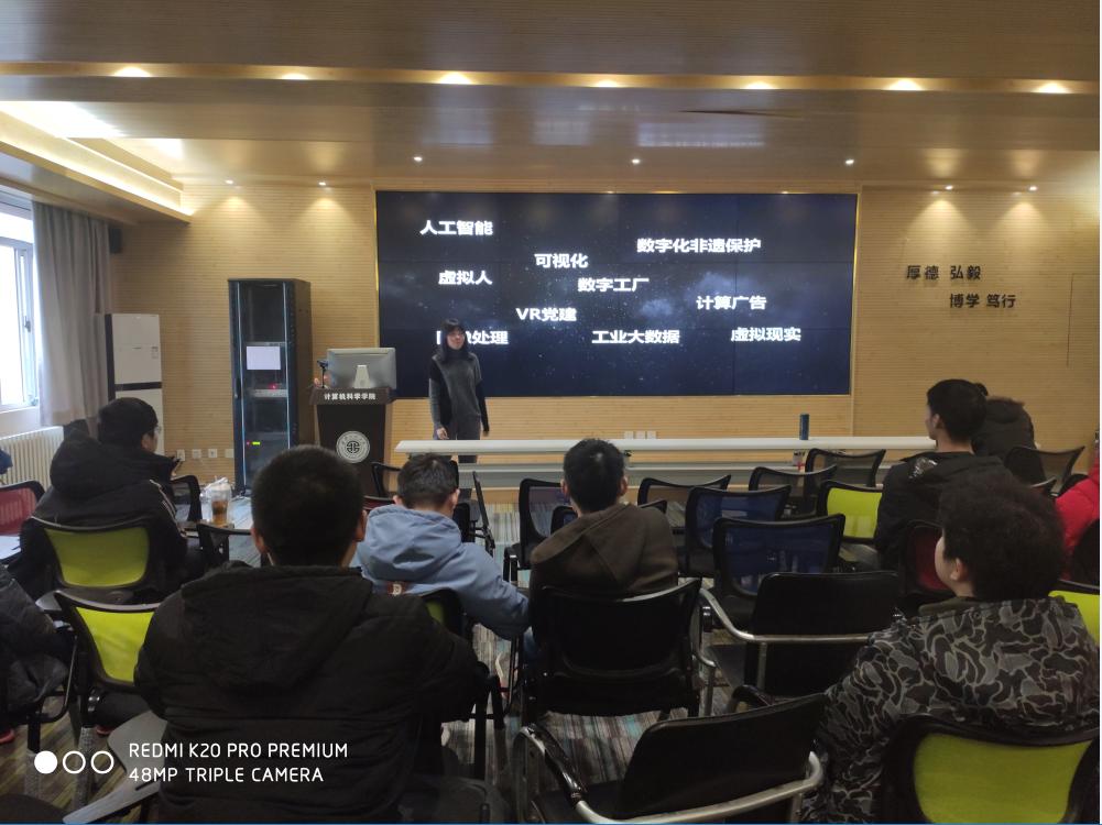 王晓慧博士运用简练的语言对人工智能和虚拟现实作了定义,着重讲述了人工智能的多学科特性、人工智能简史等,从多角度、深层次剖析了人工智能,并对虚拟环境中的人工智能作了理性客观的分析。同时,王晓慧博士指出,人工智能和虚拟现实作为一个开放的学科,要将学术研究和创新设计紧密结合起来,同时也要正确看待人工智能和虚拟现实的发展。整个报告会气氛活跃、互动热烈,在提问环节,在座的师生纷纷与王晓慧博士进行互动,提出了自己在科研方面的问题,王晓慧博士也针对这些问题进行了详细的解答。