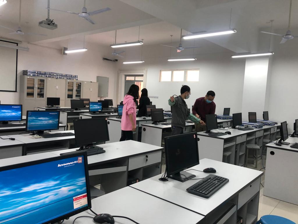 4月13日全天及14日上午,全体实验教师对我院所有实验室进行全面的卫生打扫和消杀工作,确保无死角。分别使用稀释后含有效氯浓度500mg/L的消毒液,对所有桌面进行擦拭,使用75%浓度的酒精对所有计算机键盘和鼠标进行消毒。此外,在完成地面清扫后,再使用稀释后含有效氯浓度500mg/L的消毒液对地面进行清洁。当天下午及15日全天,全体实验教师又对所有实验室进行设备故障排查及检修,并对故障进行处理、报备记录。保证实验设备完好率达到学校实验室管理处的要求,确保正式开学复课后的实验教学工作顺利展开。