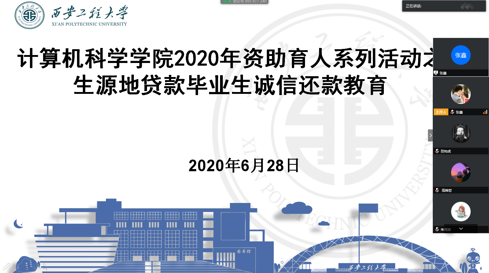 为加强对生源地贷款学生的诚信还款教育。6月28日,学院在腾讯会议线上召开生源地贷款毕业生诚信还款教育大会,向生源地贷款毕业生解读贷款还款流程,督促2020届生源地贷款毕业生诚信还款,强化毕业生诚信意识。