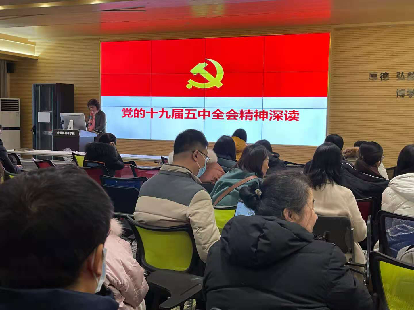 随后,学院党委书记王雅慧对学院党建工作、稳定安全及意识形态工作、党风廉政建设、师德师风以及教职工政治理论学习等工作进行了通报,就各项工作的进一步推进做了安排。同时组织学习了学校《关于加强今冬明春校园消防安全工作的通知》,介绍了学校创建省级“文明校园”和“平安校园”进展情况,强调了稳定安全工作和意识形态工作的重要性,重申了《新时代高校教师职业行为十项准则》,对师德师风提出要求。随后,王雅慧传达了《全国普通高校毕业生就业创业工作网络视频会议》和《学习贯彻党的十九届五中全会精神省委宣讲团报告会》精神,对党的十九届五中全会精神的重要内容进行了解读。她要求大家:一是强化安全意识,守住安全底线,确保学院稳定安全;二是强化师德修养,严守师德规范,做“四有”好老师;三是强化理论武装,深入贯彻落实党的十九届五中全会精神,立足岗位做贡献。