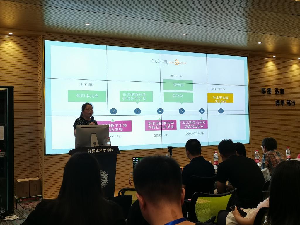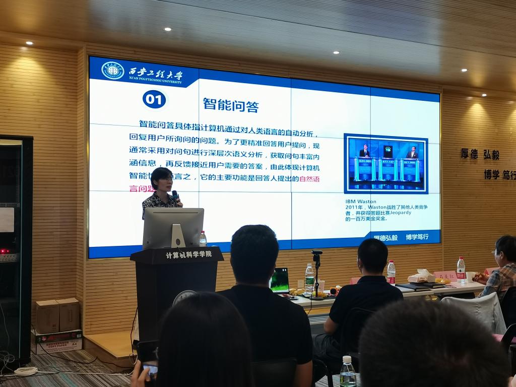 随后,朱欣娟从智能问答技术的背景及研究现状出发,重点讲述了如何基于关键词分离来构建用户意图的识别模型,阐述了智能问答自适应扩展机制的设计及基于领域知识图谱的智能问答系统,并提出现代智能问答技术领域的研究机遇与挑战。徐青青以《丝绸之路起点的刺绣》为题,结合屠呦呦获诺贝尔奖的例子,论证了可穿戴计算技术在未来技术领域和其他领域会产生的深远影响,并提醒同学们在做研发时需进行全方位的思考,不断突破计算机技术在文化领域的创新应用。
