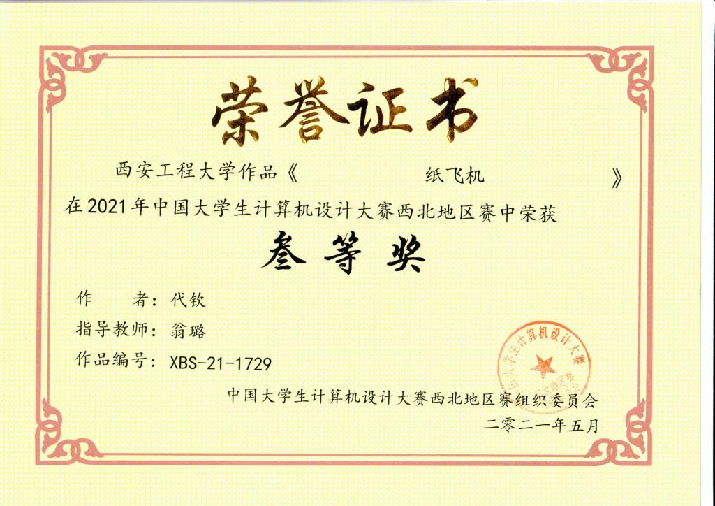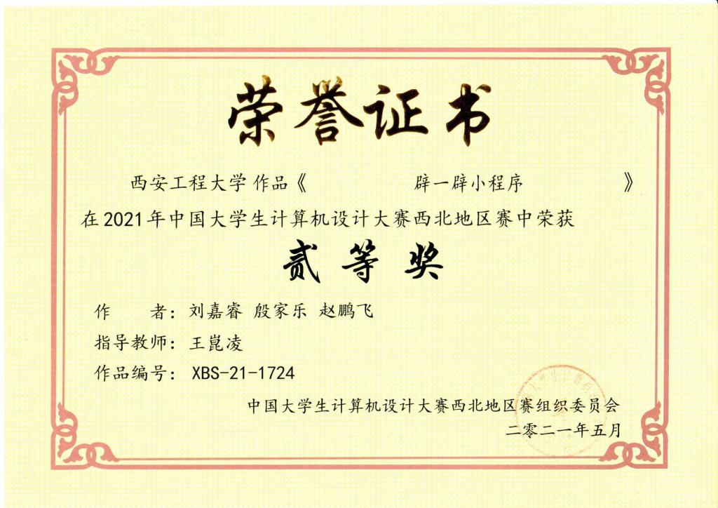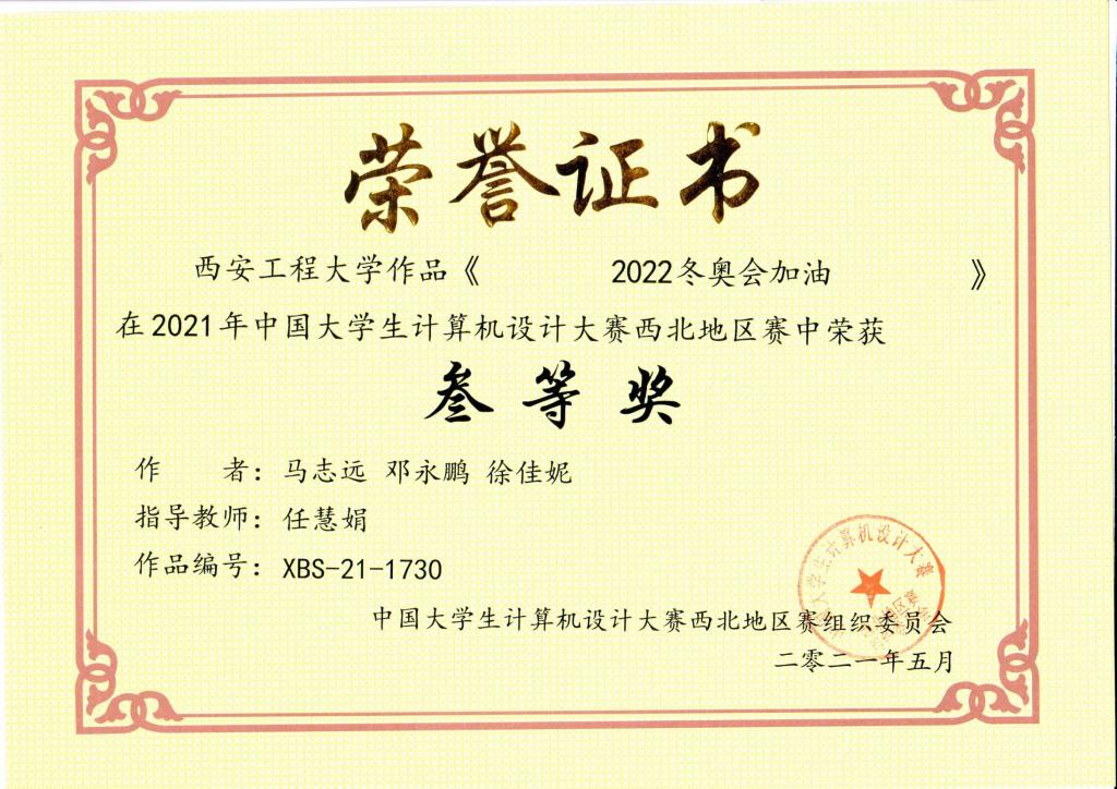 我校学生在2021年中国大学生计算机设计大赛西北地区赛中荣获佳绩​