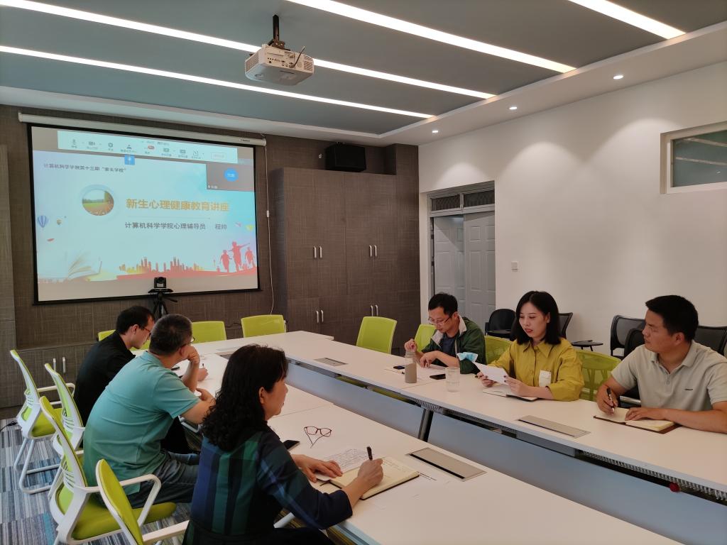 新生辅导员张鑫就近期新生教育教学、日常管理工作向各位家长和学生进行了说明并提出了具体要求。他表示将会倾注自己的心血来教育引导全体新生在大学期间获得成长,希望家长们能够放心并积极进行配合。学院心理辅导员程帅向家长们进行了学生心理健康知识科普,她从大学生活的适应、人际关系与社会支持、自我价值的体现和人际规划等方面展开,希望家长不仅要关心学生在校园里的学习生活,更要引导他们快乐健康成长,希望家长能和学校一起,共同关心关爱学生,引导他们顺利度过大学适应期。
