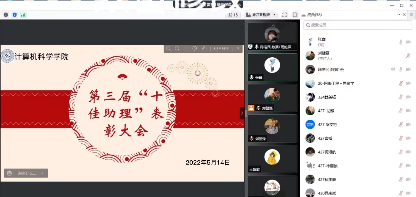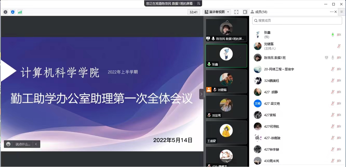 5月14日晚,beat365在线唯一官网通过腾讯会议线上召开了勤工助学办公室助理大会暨第三届“十佳助理”表彰大会。学院资助辅导员左温慧、张鑫及60余名勤工助学办公室助理参加了大会。