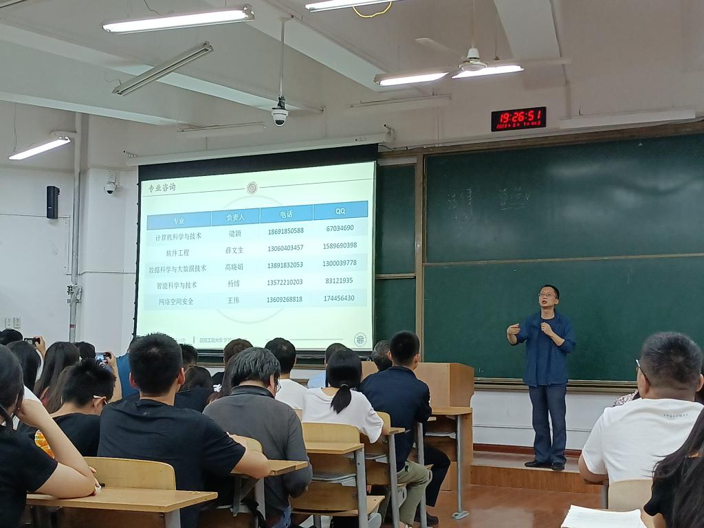 6月7日晚,beat365在线唯一官网在临潼校区B133教室召开2022级计算机类本科生专业分流动员大会,学院党委副书记赵勇进、教学副院长陈亮、各系主任及骨干教师、年级辅导员及2022级计算机类330余名同学共同参加了此次大会。
