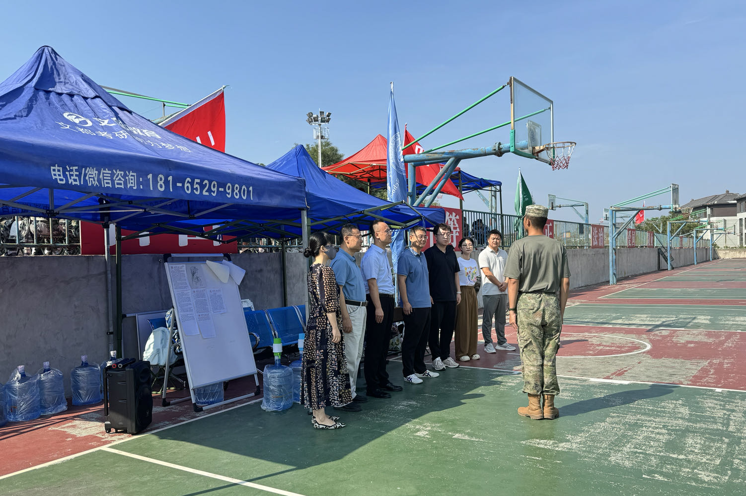 军训,是大学生活的第一堂课,它不仅是对新生体能的训练,更是对新生意志的锤炼,是新生从青涩走向成熟、从依赖走向独立的起始点。为了感谢军训教官不辞辛苦、倾情付出,鼓励2024级新生克服困难、刻苦训练、磨炼意志品质,9月3日上午,beat365在线唯一官网院长薛涛、党委副书记(主持工作)闫小兵、党委副书记赵勇进及全体辅导员走进学生社区,深入军训场地,对军训教官和全体参训本科生进行了亲切慰问。