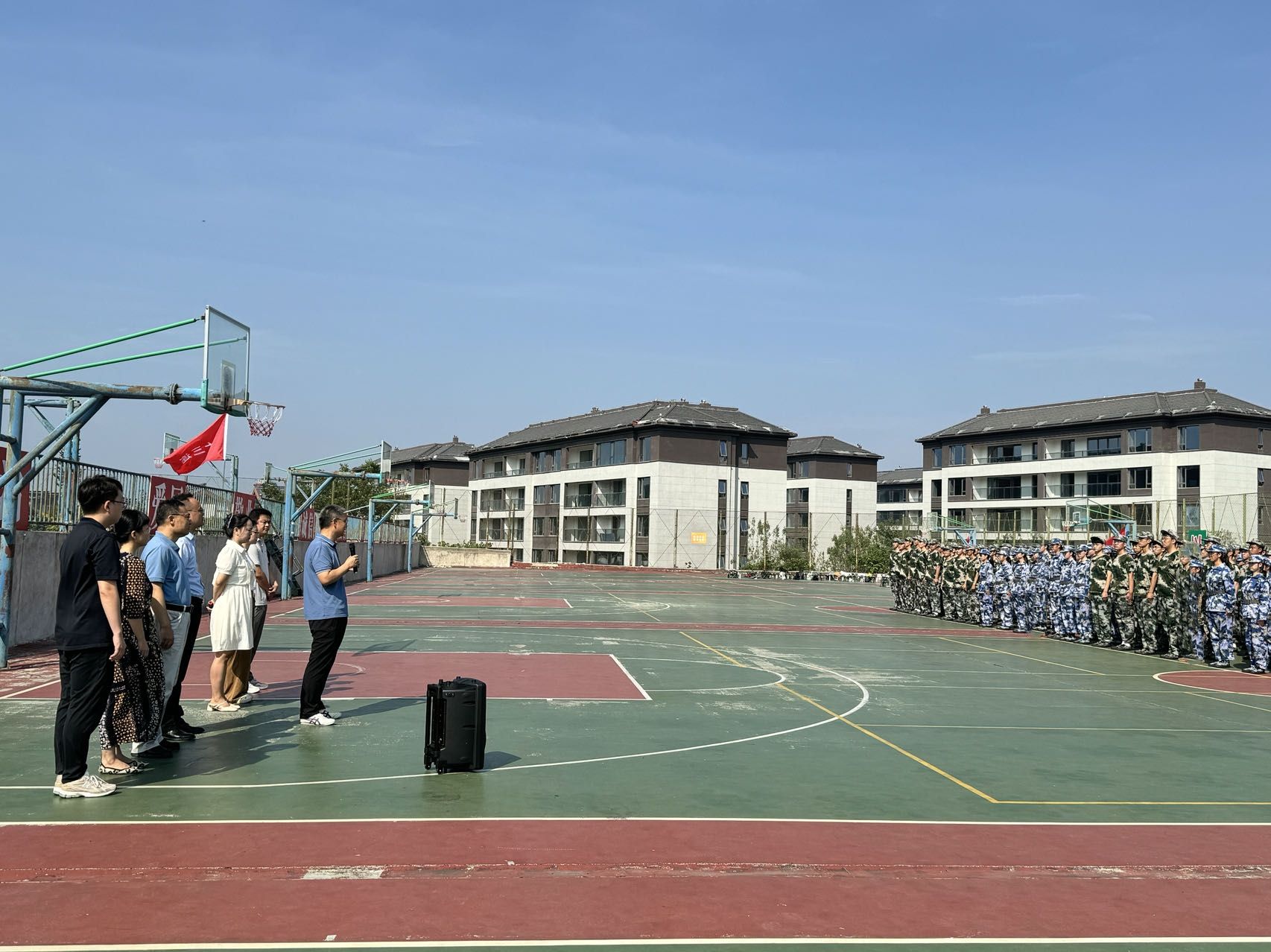 薛涛首先代表学院向辛勤工作在军训一线的全体教官表达了诚挚敬意和感谢,向全体参训同学致以亲切问候,对他们取得的阶段性的训练成绩表示祝贺。他指出,军训不仅能够增强同学们的国防观念,更是对我们身体素质和团队协作精神的一次全面锻炼,希望全体2024级同学通过刻苦训练展现出新时代大学生的良好精神风貌,为即将到来的全新的大学生活开好头、起好步。