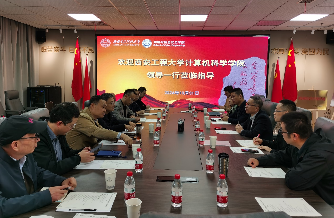 调研首日,西安电子科技大学网络与信息安全学院李晖院长首先对调研组的到来表示热烈欢迎,该院杨超副院长详尽介绍了学院在学科建设、师资队伍、本科教学等方面的发展历程,他还特别强调了学院在密码学、网络安全、信息对抗等前沿领域人才培养的积极探索与实践,该院信息安全系吕锡香主任分享了教学改革的新思路、课程设置的创新举措,以及实验室建设的宝贵经验。双方还围绕网络安全学院的建设经验、教学实验平台的构建、本科生培养体系的完善等核心话题开展了深入交流。最后,双方结合我校实际情况,对制定既符合社会需求又促进学生全面发展的本科培养方案进行了富有成效的探讨。
