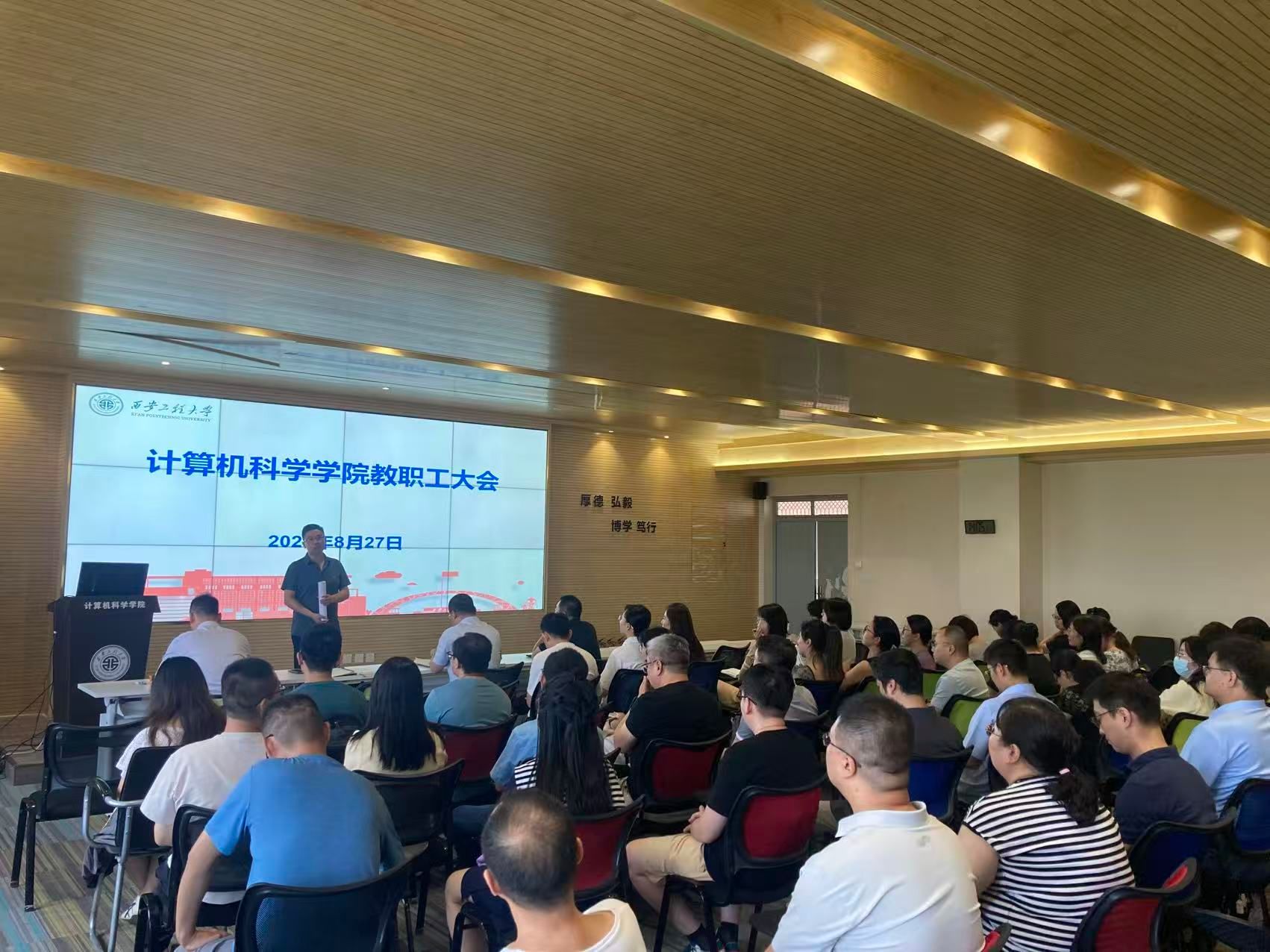 以奋进之姿赴新程,以笃行之力谋新篇。8月27日,beat365在线唯一官网在学院楼614报告厅召开新学期全体教职工大会,梳理总结学院上半年取得的各项成绩和存在的不足,谋划部署安排新学期重点工作任务。学院党政班子成员依次就主管或分管的工作进行总结和安排布置。学院全体教职员工参会,会议由学院党委副书记闫小兵主持。