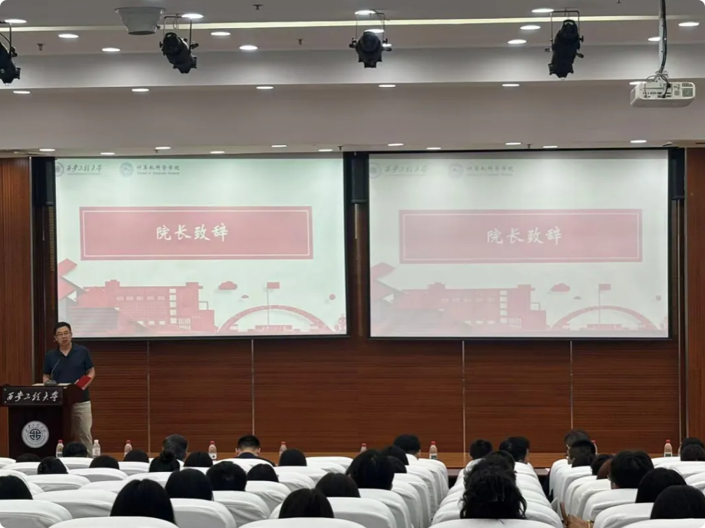 最后,党委副书记闫小兵讲话。他对新生提出四点希望:一是要立心铸魂,锚定家国方向。把学术追求融入国家需求,严守网络与意识形态底线。二是要深耕细研,锤炼科研韧劲。脚踏实地,坚守求真唯实,用好学院一流平台,多出高水平成果。三是要敢闯敢创,激发创新活力。打破思维定式,敢于探索未知,为国家科技进步、社会发展贡献力量。四是要张弛有度,守护身心之基。珍惜三年学习科研的黄金期,让自己成长为身心健康、品学兼优的高层次专门人才。