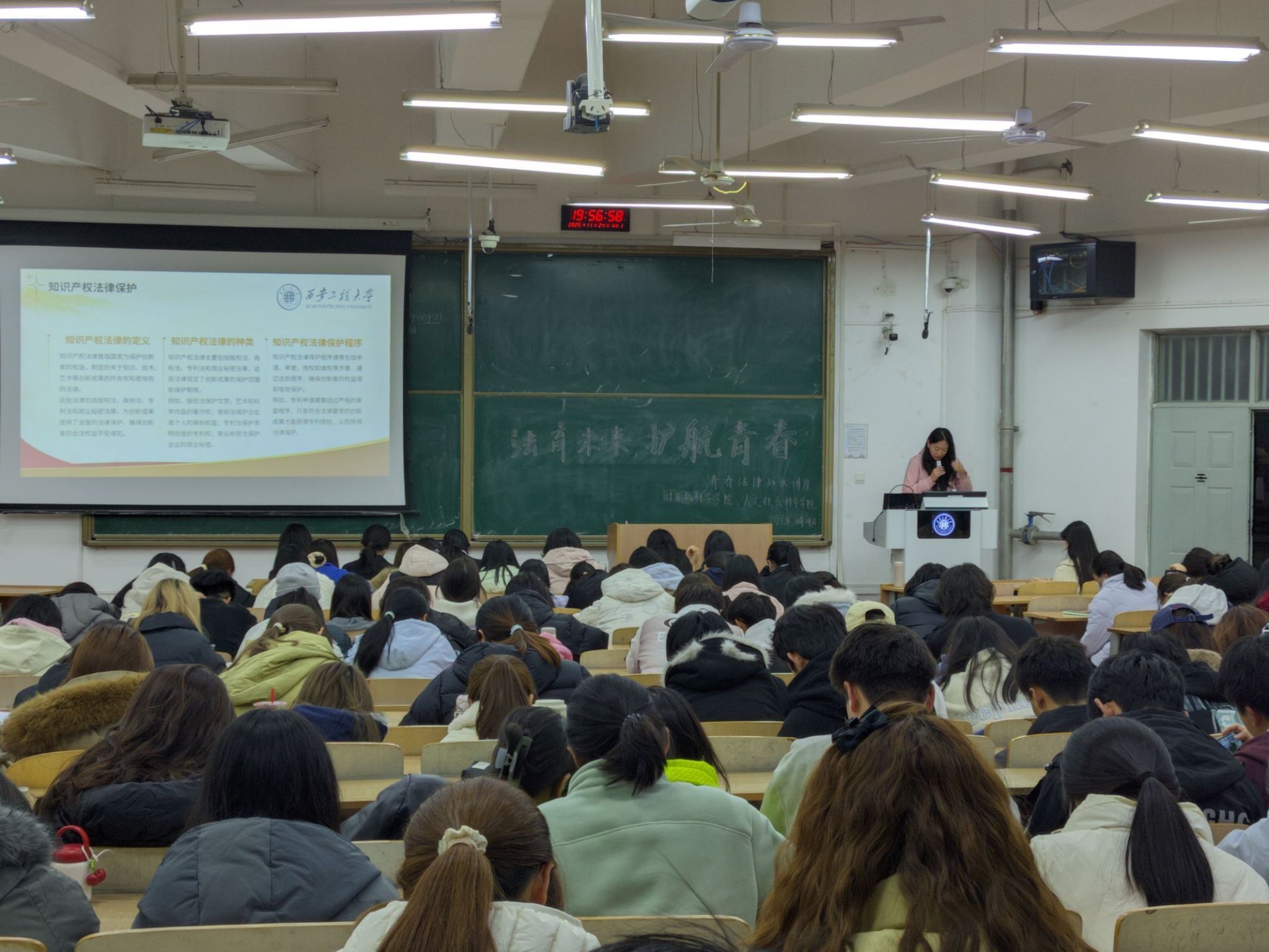 法治是青春成长的重要保障,校园是法治教育的关键阵地。为深入推进法治教育进校园,强化青年学子法治素养,2025年11月25日,beat365在线唯一官网与人文社会科学学院在临潼校区教学楼B133教室联合主办普法宣传讲座,两学院260余名师生现场参与。