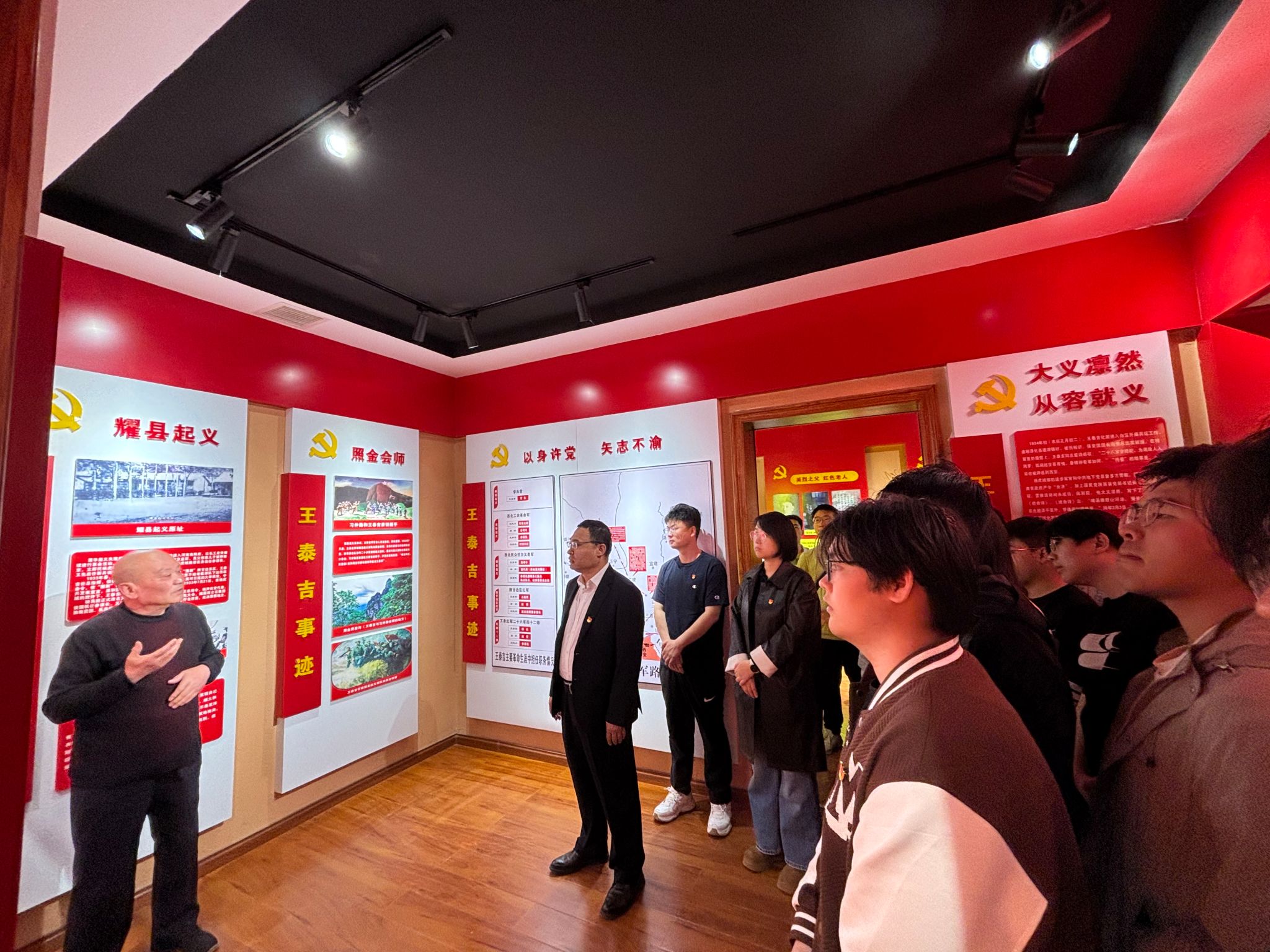 在讲解员的带领下,大家步入王泰吉烈士生平纪念馆,聆听英烈感人至深的革命事迹,深刻感悟革命先辈为中国革命事业舍生忘死、浴血奋战的赤诚担当,铭记先辈铸就的不朽功勋。在纪念馆内,大家观看了珍贵的历史影像、实物史料,沉浸式体悟艰苦卓绝的革命斗争岁月,全方位回望中国革命披荆斩棘、砥砺前行的壮阔征程。