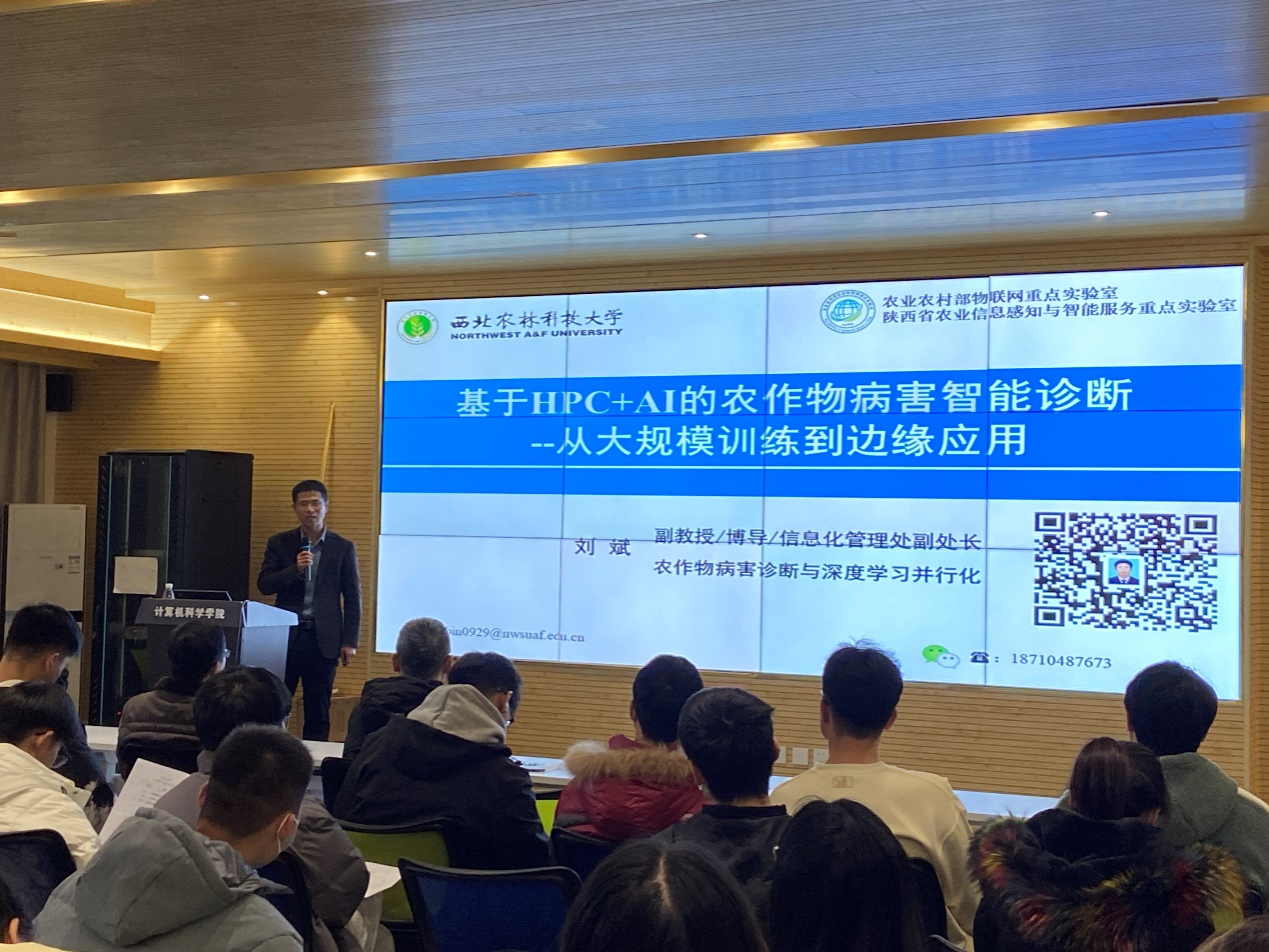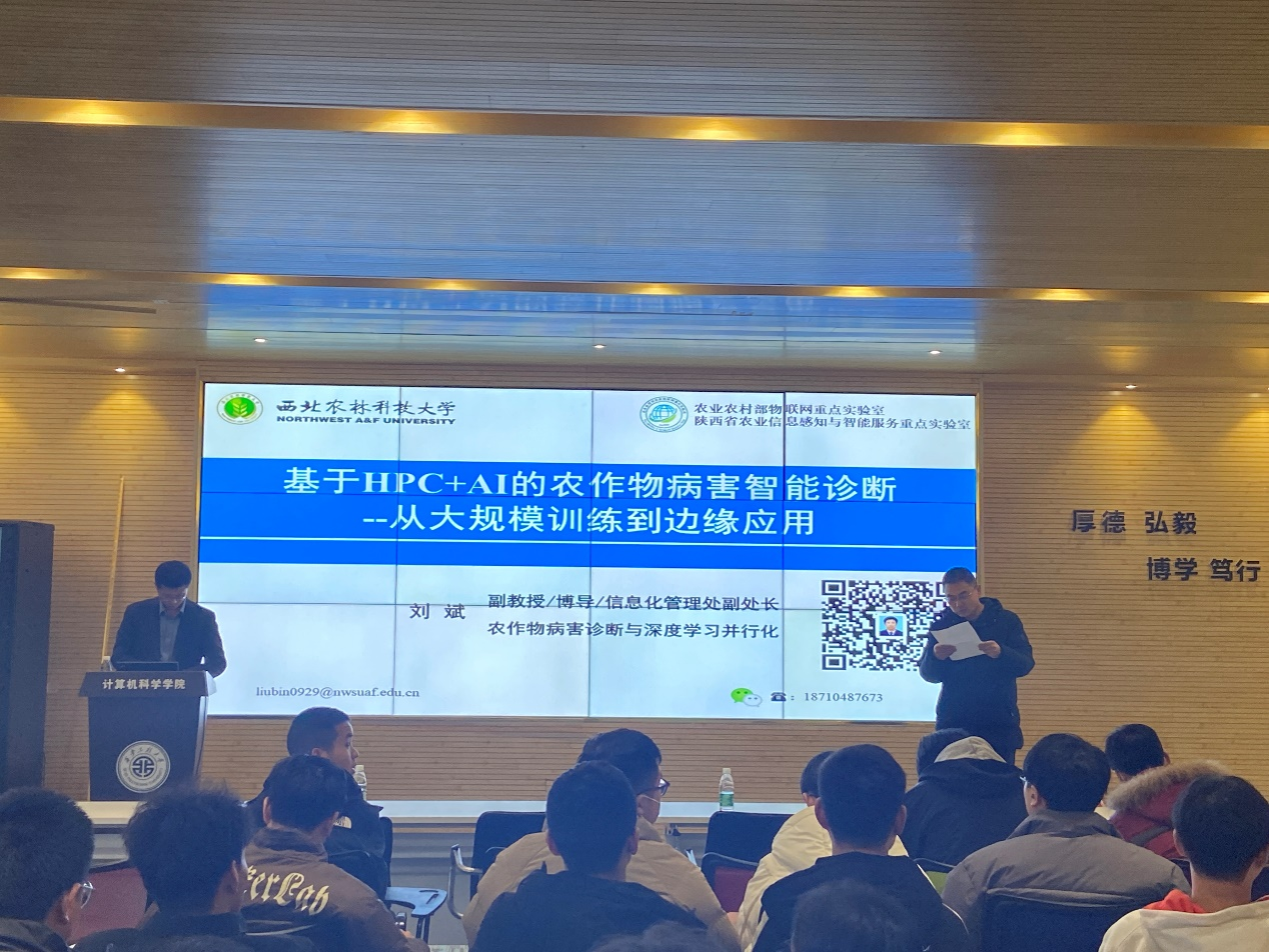 为拓宽研究生学术视野,活跃学术氛围,提升研究生的科研创新能力和综合素质,2023年12月13日14时30分,beat365在线唯一官网在计算机楼614报告厅举办第十九期经纬学术沙龙暨2023年研究生“极客论坛”第十期学术讲座活动。西北农林科技大学数据科学系主任、博士生导师刘斌副教授应邀做题为“基于HPC+AI的农作物病害智能诊断——从大规模训练到边缘应用”的学术报告。学术报告会由beat365在线唯一官网院长薛涛教授主持,beat365在线唯一官网100余名师生参加了报告会。