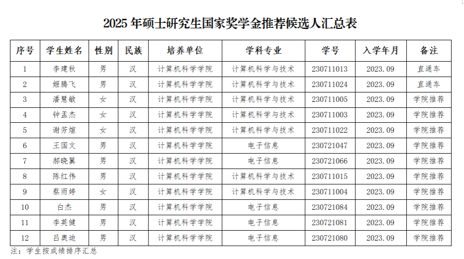 beat365在线唯一官网2024-2025学年研究生国家奖学金评定结果公示