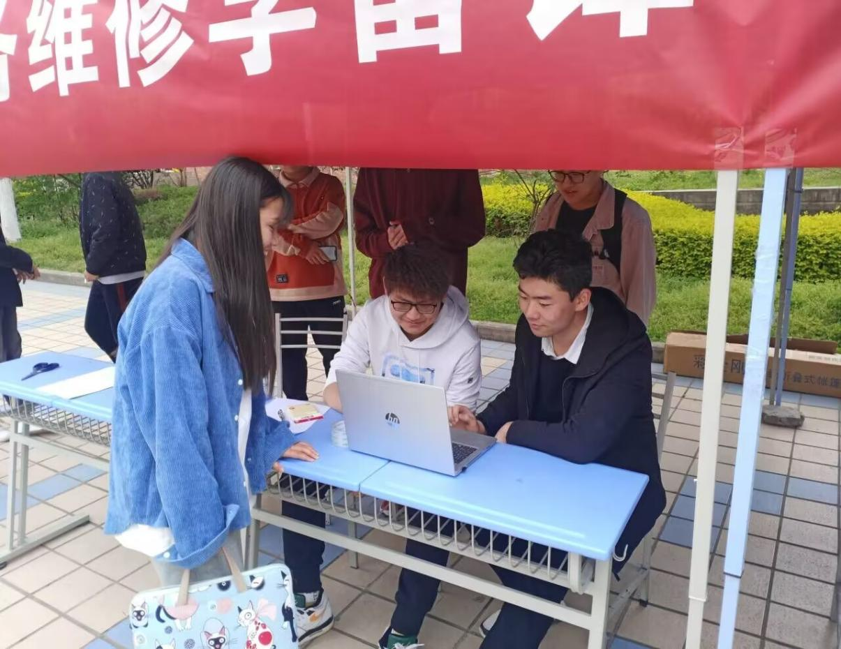 此次义务维修服务项目主要包括计算机系统维护、病毒清理、垃圾清理、软件升级、常用软件指导、计算机系统重装、硬件设备的推荐及日常维护等服务项目。活动开始有很多同学来到活动现场,咨询关于电脑方面的知识,技术人员现场进行维修,在现场进行拆卸与组装,为同学们仔细地排除各种故障,解决他们电脑的问题。