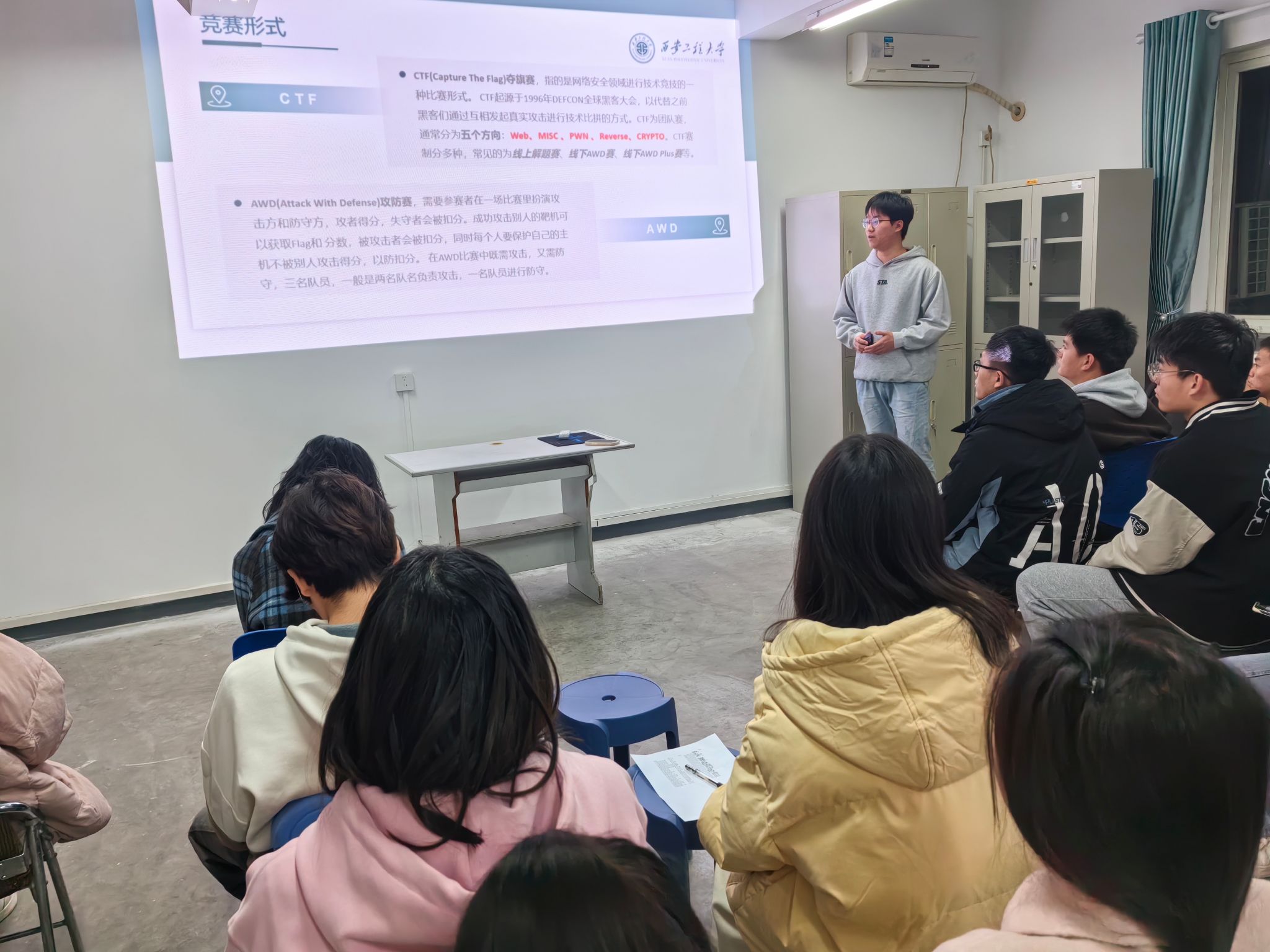此次“一站式”学生社区“IT智能课堂”不仅为学生提供了一个了解网络安全竞赛、提升专业技能的平台,更激发了他们对网络空间安全领域知识的浓厚兴趣。相信在不久的将来,这些怀揣梦想的学子们会树立起网安人对于网络强国建设的强烈使命感,成为新时代国家网络空间安全领域的栋梁之才。(撰稿:左温慧 审核:赵勇进)