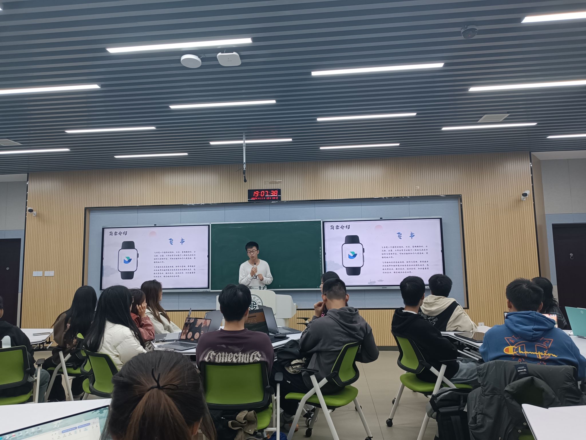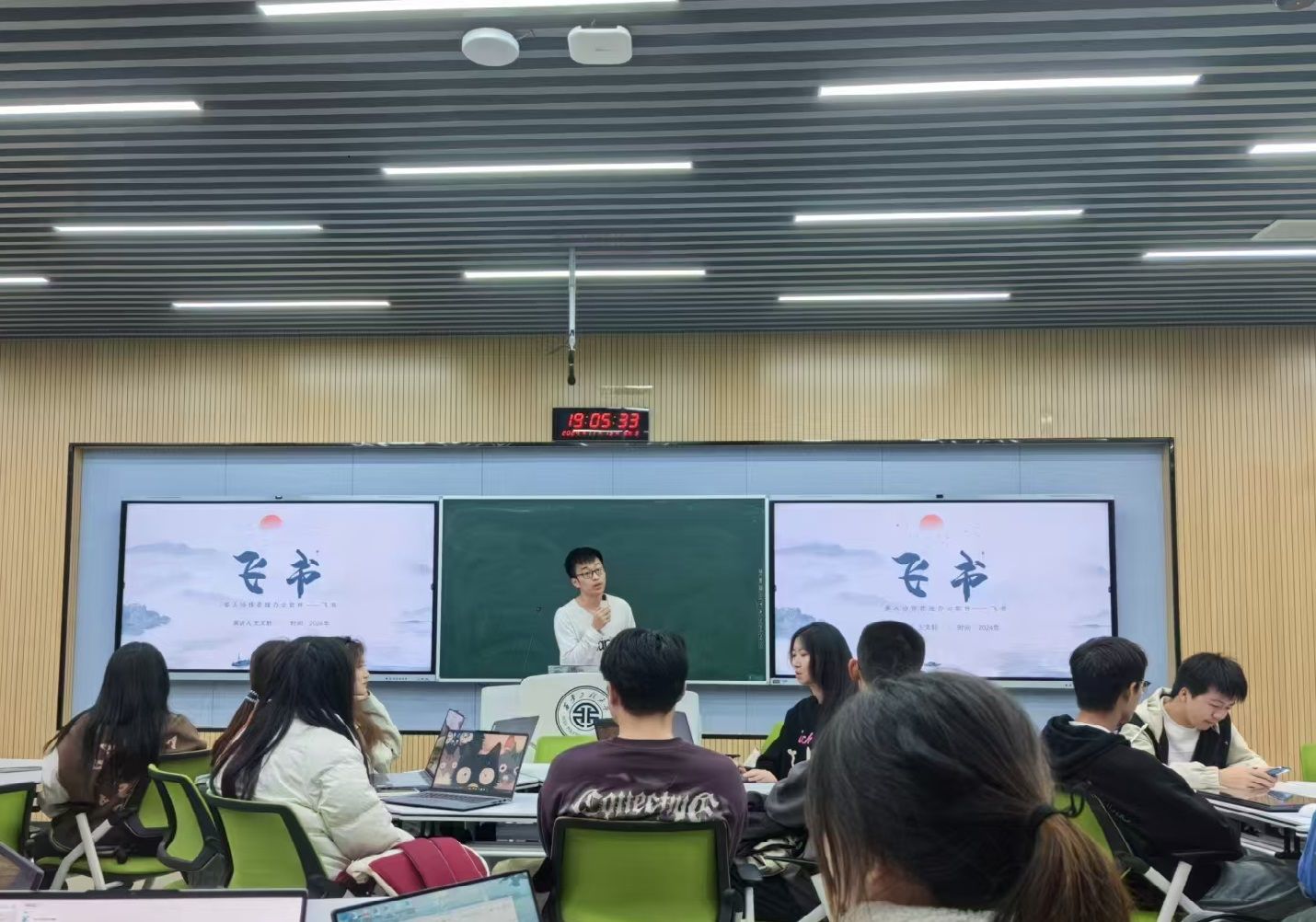 本次活动是我校“笃行联盟”“一站式”学生社区育人联合体联盟学院推出的系列活动之一,旨在帮助学生提升使用电脑办公软件的技能,以便更好地适应数字化办公环境。课堂上,王文轩概述了飞书的基本功能和特点,详细讲解了其高效的工作原理。他通过生动的案例和直观的演示展示了飞书在团队协作中的优势,如即时通讯功能支持一对一迅速交流和群组创建的便捷性,智能消息通知系统则能有效避免关键决策的漏洞。此外,他还讲解了飞书在团队协作、项目管理、知识共享等方面的应用技巧,让同学们了解飞书在提升个人和团队的工作效率方面的优势。