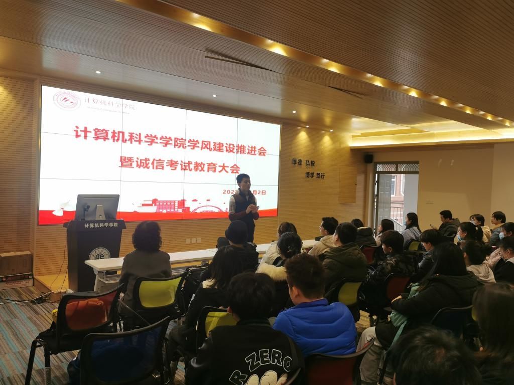 最后,朱成功重申了学校关于诚信考试方面的规定和要求,结合我校对考试违纪学生处理的处分文件,要求全体同学遵守校纪校规,遵守考场秩序,诚信做人、诚信办事。