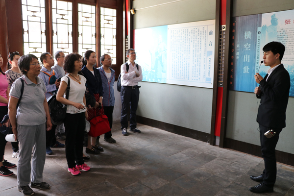 第二部分:张载祠。在眉县横渠镇,党员们参观了横渠张载祠和横渠书院。张载(1020 -1077年),字子厚,凤翔郿县(今陕西眉县)横渠镇人,北宋思想家、教育家、理学创始人之一。张载青年时喜论兵法,后求之于儒家“六经”,曾任著作佐郎、崇文院校书等职。后辞归,讲学关中,故其学派称为“关学”。张载祠是张载年少读书和晚年讲学之处,祠祀以正蒙殿为中心,纪念馆、碑刻、祭祀殿等环绕四周,牌匾、楹联映衬着大儒之本色。在讲解员的引导下,党员们感受到了儒家大师之崇高风范,进一步领悟了他“为天地立心,为生民立命,为往圣继绝学,为万世开太平”的“四为”思想的深刻内涵。